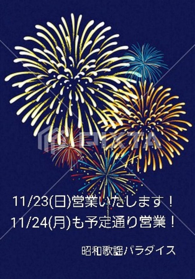 11月後半の三連休、本日11/23(日)勤労感謝の日ですが、19時より営業することにしました。
